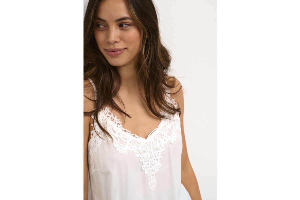 A simple, easy cami with lovely detailing around the neckline and shoulder straps. It’s the kind of piece that works just as well on its own as it does layered under a jacket.