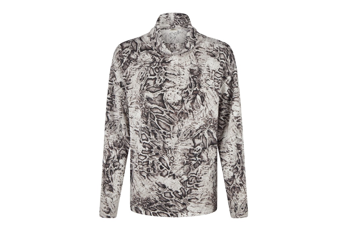 Who knew cosy could look this bold? This soft-touch polo neck by Barbara Lebek combines comfort with just the right amount of drama. The abstract snakeskin print in black and grey (colour: Steel 923) gives it a modern edge, while the fabric — 95% polyester, 5% elastane — has that dreamy, brushed feel you’ll want to live in.