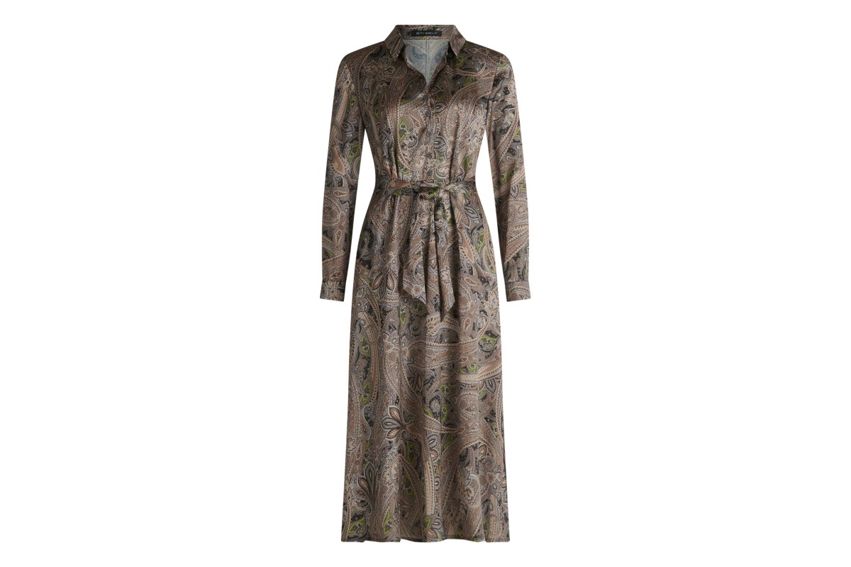 A statement print meets a timeless cut. This paisley shirt dress from Betty Barclay combines soft grey and beige tones with subtle flashes of green for a fresh, modern twist. The fitted bodice flows into a flattering midi-length skirt, with a self-tie belt to cinch the waist. Long sleeves and a neat shirt collar make it perfect for autumn layering, whether dressed up with boots and a blazer or worn simply with tights and loafers.