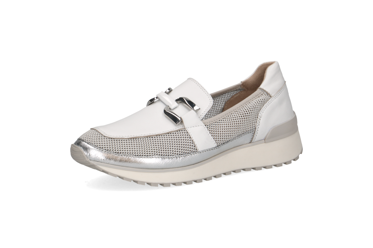 Introducing the exquisite shoes from the renowned German brand, Caprice. These stylish shoes are available in a classic white with silver accents, with additional stunning options available on our website.