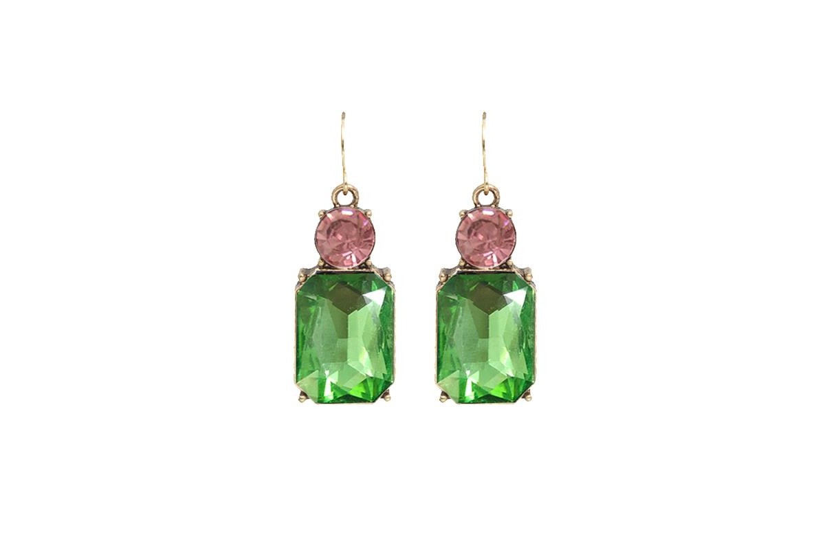 Zinc alloy with gold-tone French hooks, faceted glass stones
