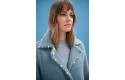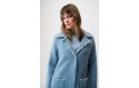 This feather yarn sweater coat offers a relaxed fit with a notched collar and long sleeves. Featuring patch pockets and a snap closure, it’s adorned with elegant pearl trims at the collar and pocket, bringing a touch of sophistication to a cosy, unlined piece.