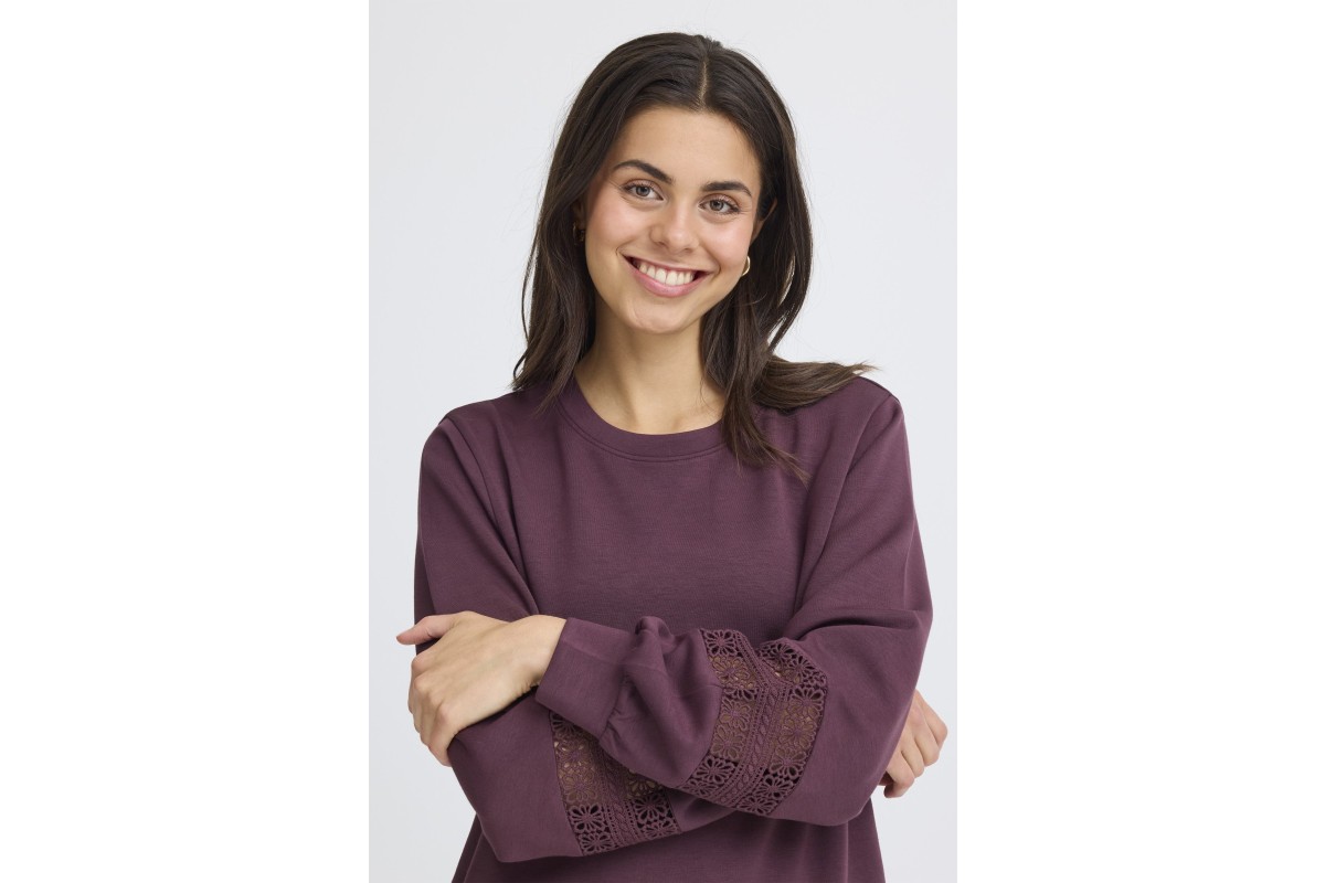 Soft, comfy, and just a little bit fancy. The Aurora sweater adds instant charm with delicate lace inserts on the sleeves — turning a simple jersey into something special.