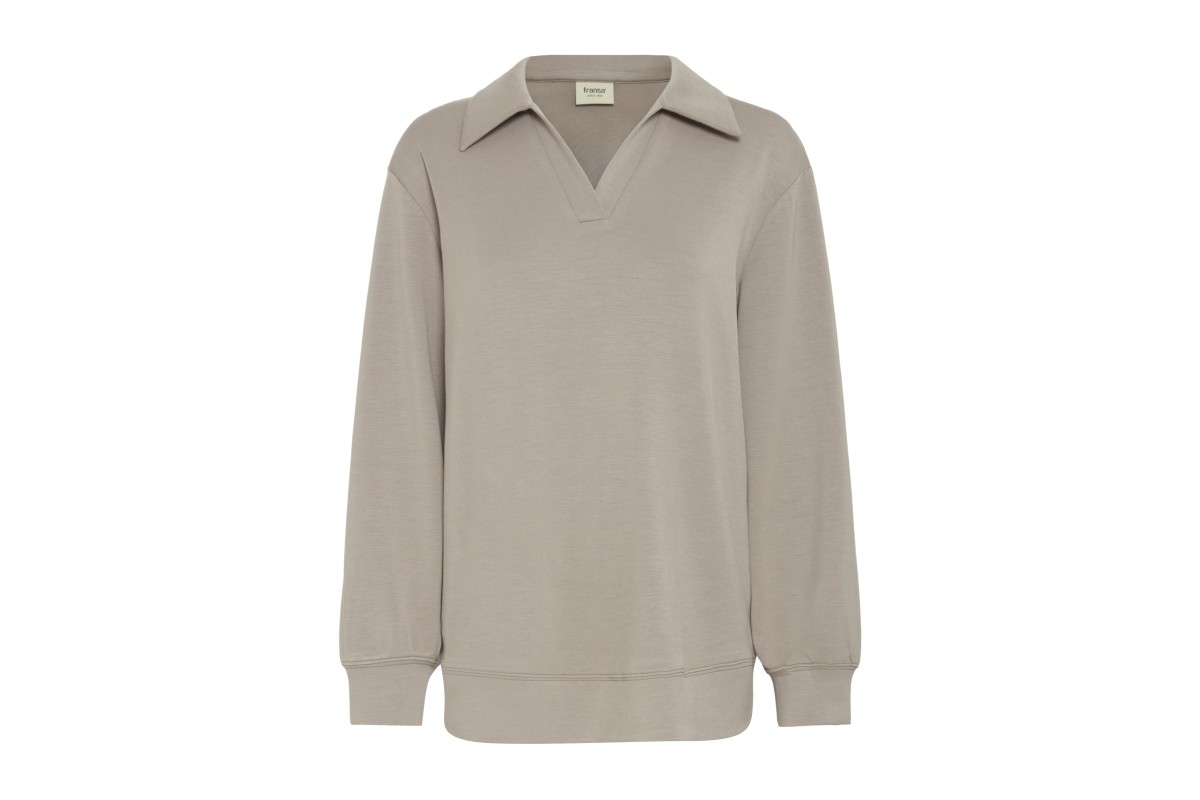Laid-back comfort with a smart twist. The Aurora collared sweatshirt takes your everyday jersey to the next level with its chic collar detail. Super soft, breathable, and versatile, it’s perfect for layering or wearing solo. Available in Fudge (autumn red/plum), Meteorite Black, and Moon Rock (a soft taupe shade). Dress it up with tailored trousers or keep it casual with joggers — either way, it works.