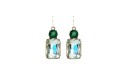 French Hook, Oval & Rectangle Drop Earrings - Clear & Emerald
