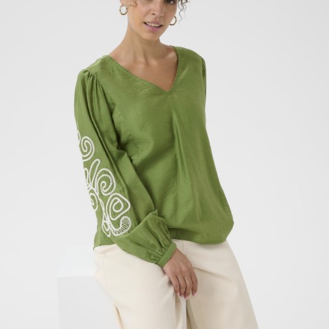 The shape is easy and flattering – softly fitted through the top with a gentle waist seam, then flowing into a relaxed skirt that moves beautifully as you walk. The notch neckline keeps it light and open, and the mid-length sleeves give just the right amount of coverage.