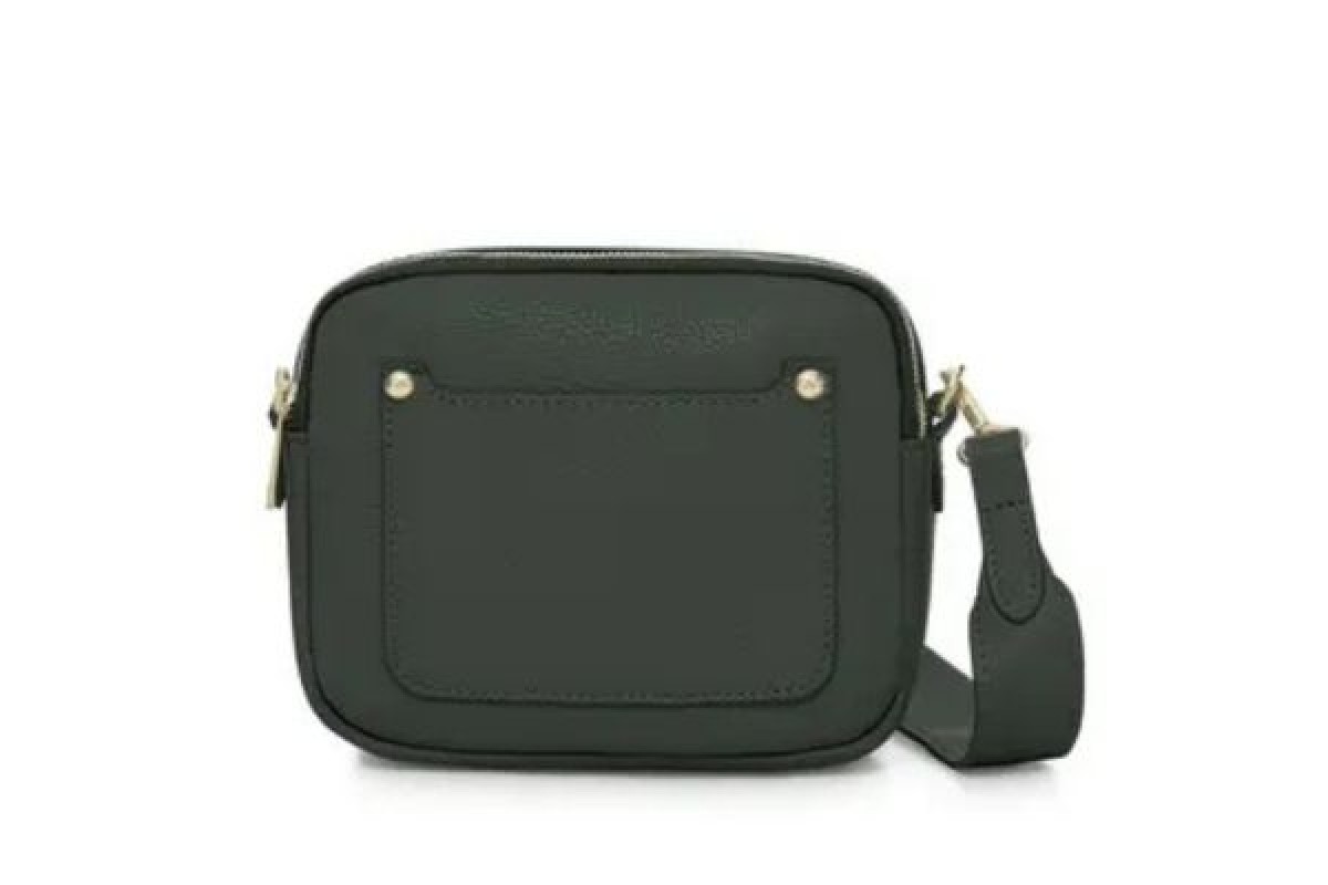 Italian Leather Double-Zip Crossbody Bag - Dark Green