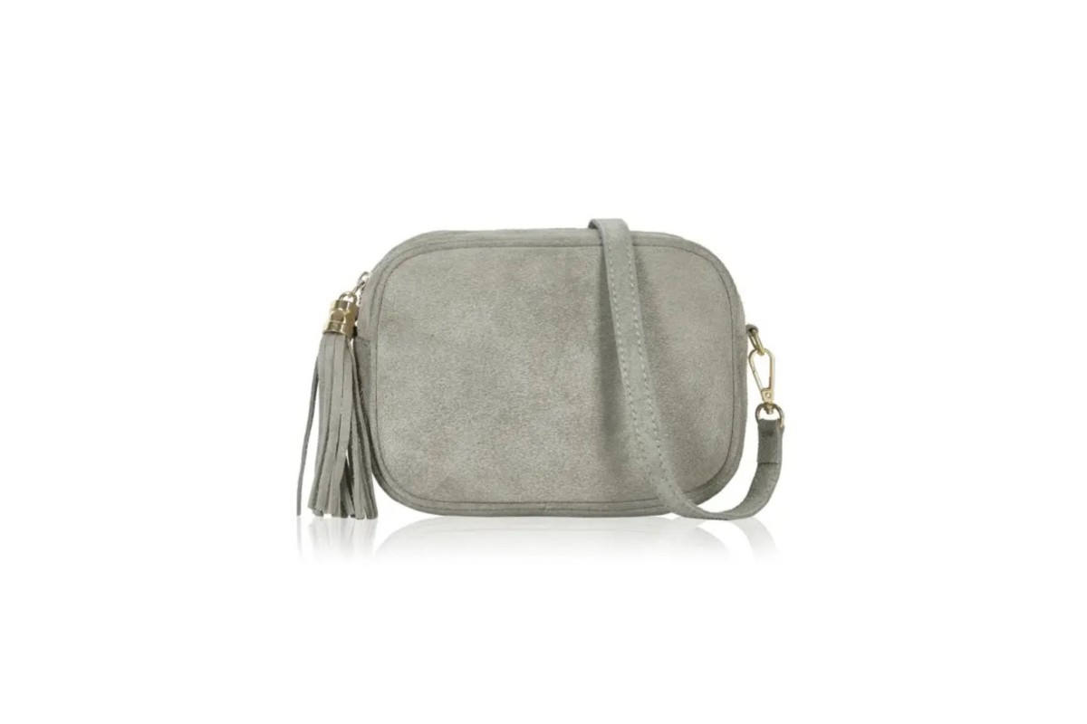Italian Suede Camera Bag - Silver Grey