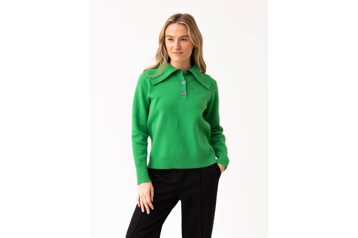 Bright, bold, and full of personality. This Marble jumper in kelly green is designed in a soft cotton blend with a relaxed fit, statement oversized collar, and half button placket. With long sleeves and ribbed trims, it’s an easy way to add impact to your knitwear collection.