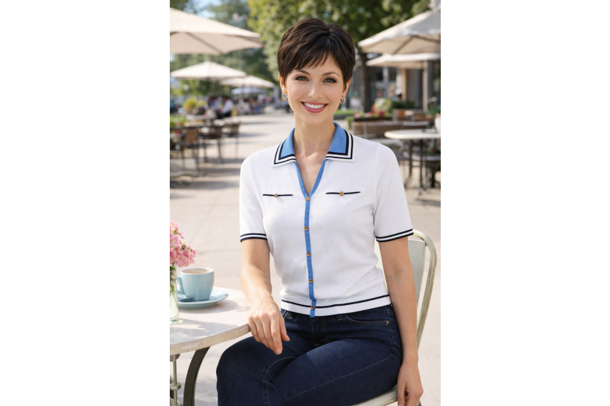 Micha SS Knitted Tee | White & Blue