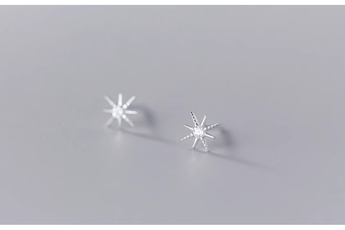 Product Description: Bring a little sparkle to your every day with these delicate star studs. Crafted in sterling silver and set with tiny cubic zirconia, they catch the light beautifully for just the right amount of shimmer. Their petite size makes them perfect for stacking with other earrings or wearing solo for a touch of celestial charm.