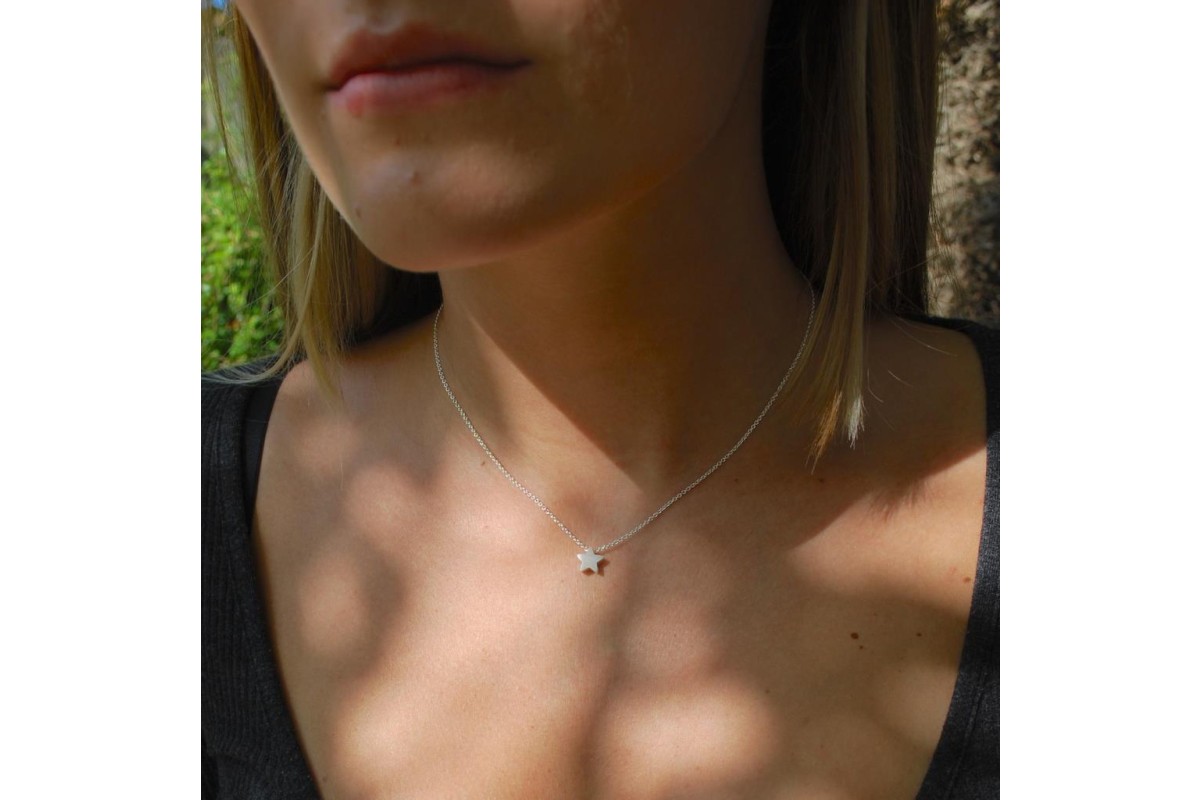 A little star with a lot of charm. This dainty necklace is designed to sit beautifully at your collarbone, bringing subtle sparkle to your everyday look. Sterling silver-plated brass makes it light, easy to wear, and perfect for layering.