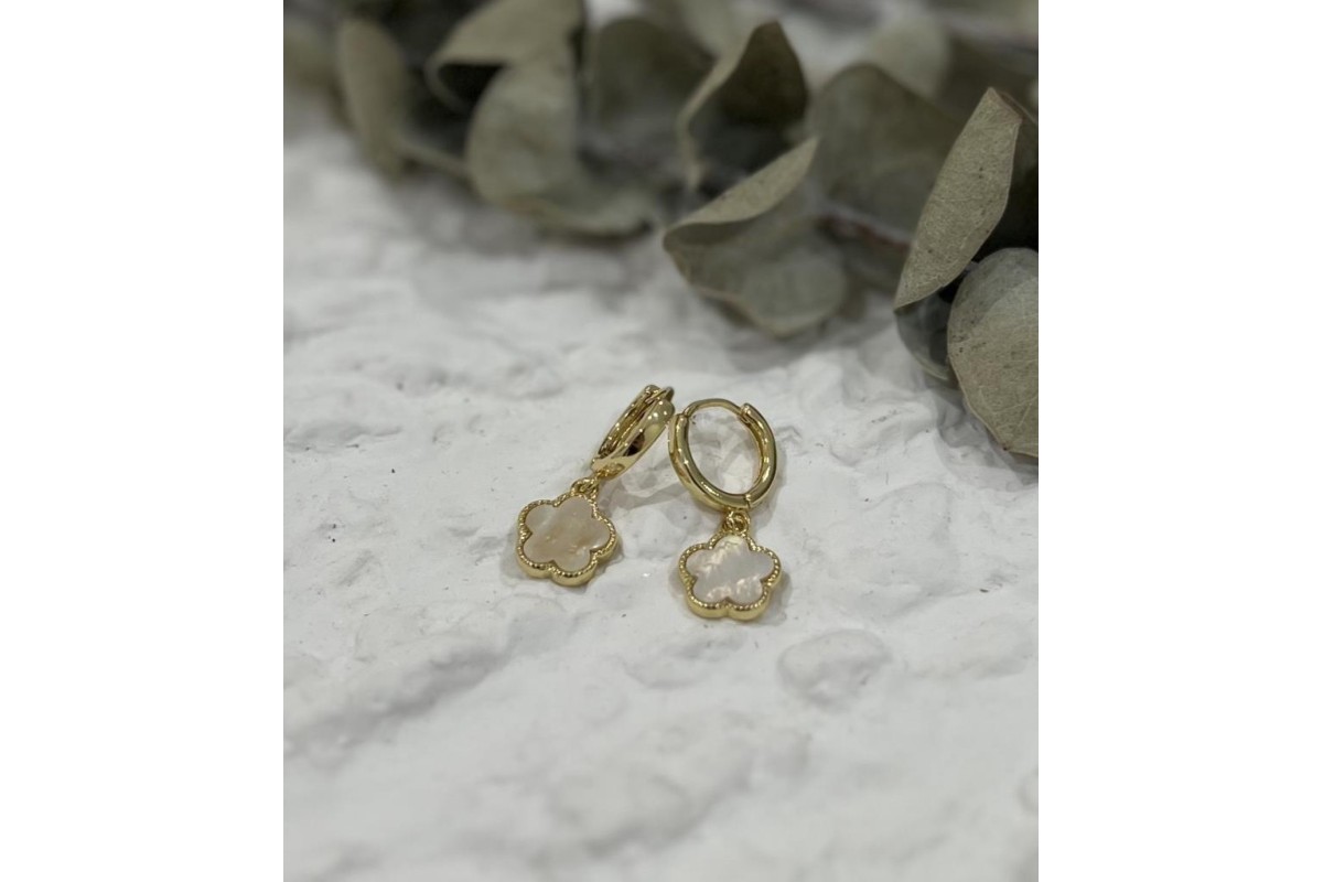 These dainty huggie earrings are blossoming with charm. Featuring delicate mother-of-pearl flowers set in warm 14kt gold-plated brass, they bring an effortless touch of femininity to any look. Lightweight and versatile, they’re perfect for everyday wear while adding a soft shimmer that catches the light beautifully.