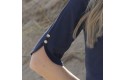 Detail: Elbow-length sleeves with decorative button cuff detail