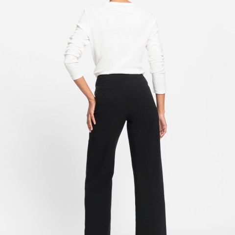 Experience the ultimate in comfort with these incredibly soft black trousers, designed with a relaxed leg, pockets at the front and a stylish turn-up at the ankle. The 'jump in' style means no buttons or zips—just slip them on like your favorite joggers, but with a touch of elegance!