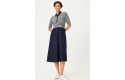 This beautifully cut navy and stripe dress by Olsen brings together that perfect mix of relaxed and refined. The soft striped top with its smart collar gives a nod to classic polo styling, while the flowing navy skirt keeps it feminine and easy.