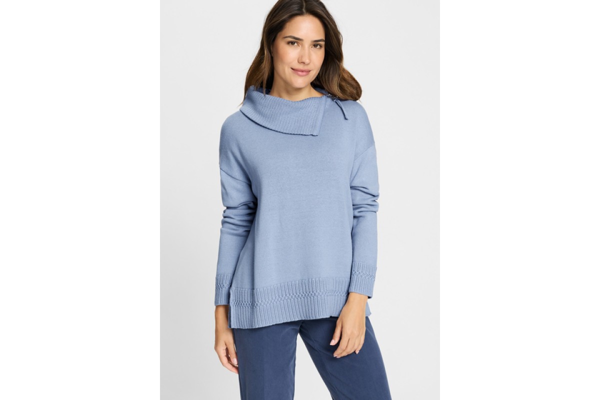 Olsen Soft Blue Turn-Over Zip Neck Jumper