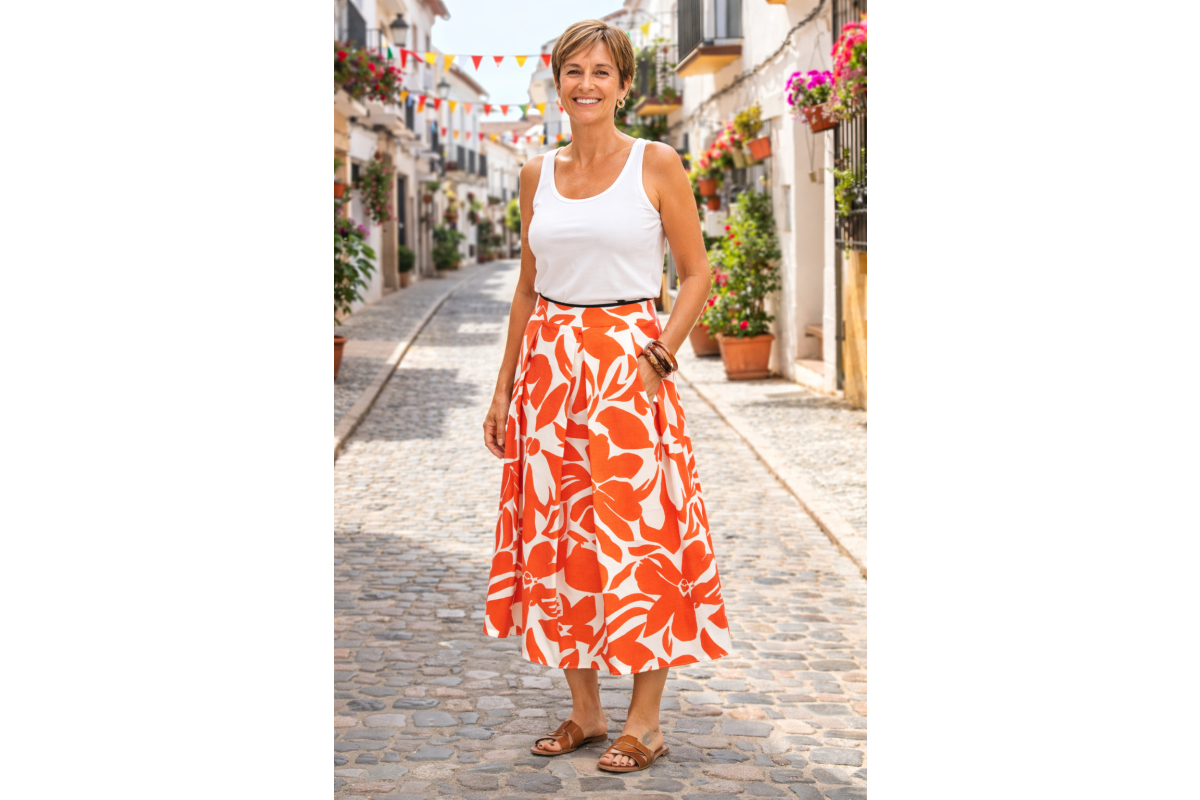 Orange Print Cotton Skirt