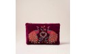 A true showstopper in rich ruby red velvet, this embroidered pouch from Elizabeth Scarlett features graceful peacocks surrounded by delicate blooms — a little piece of botanical beauty you can carry with you.
