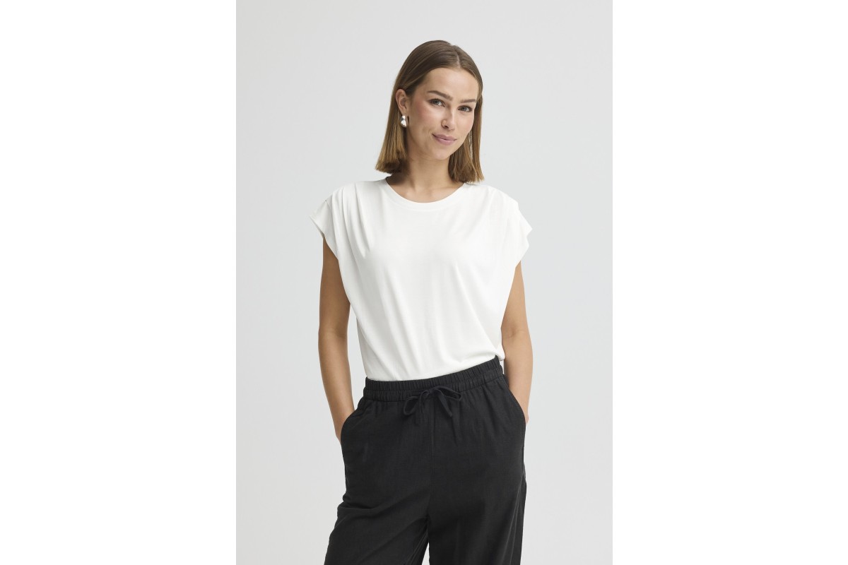 Ruched Shoulder Tee | White