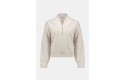 This scuba jersey sweatshirt adds a sleek edge to a laid-back silhouette. Designed with a high collar, V-necklineline, and front zipper, it blends comfort and structure in an easy boxy fit.