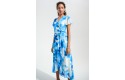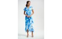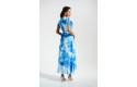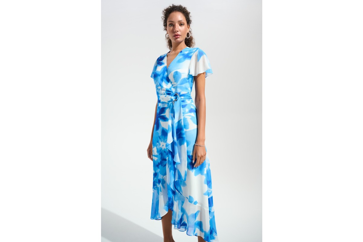 Joseph Ribkoff Signature | Blue Chiffon Print Wrap Dress With Ruffle Detail