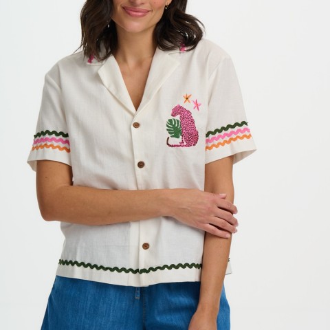 Michelle Shirt – Off White Pink Leopard | Sugarhill Brighton From Sugarhill Brighton, this...