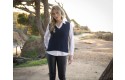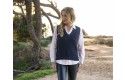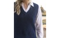 With a relaxed fit, ribbed v-neck, and wide shoulder coverage, this navy sleeveless jumper is as easy to wear as it is eye-catching. Layer it over crisp whites, pretty prints, or go bold with tonal brights.