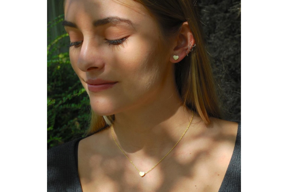 Simple, timeless, and just a little bit romantic. This sweet necklace features a polished heart pendant on a fine 20kt gold-plated chain, perfect for layering or wearing solo. A dainty piece that carries plenty of meaning — and pairs beautifully with the matching stud earrings.