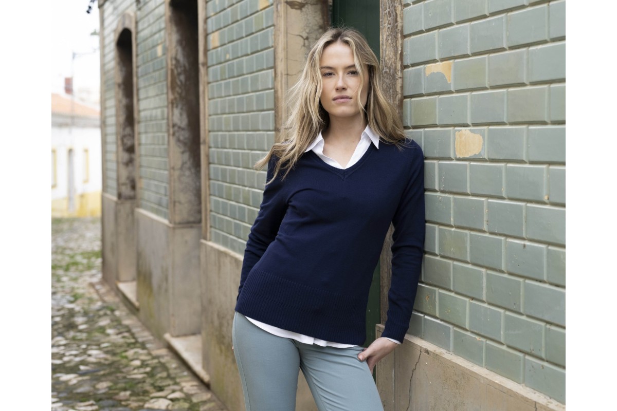 A true classic, Marble’s navy V-neck jumper is the versatile knit every wardrobe needs. Knitted in a viscose blend for softness and comfort, it features a classic fit with ribbed hem and cuffs to hold its shape. Perfect for layering over crisp shirts or styling simply with denim.