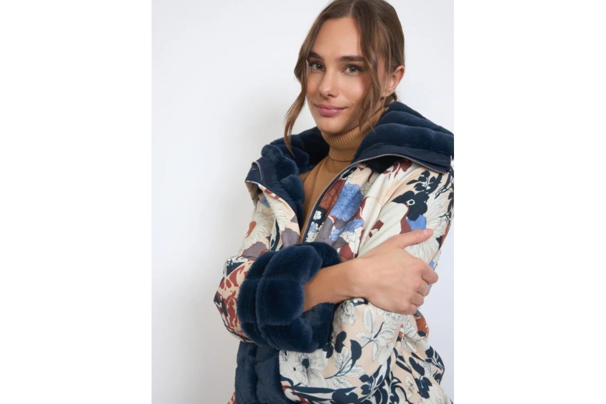 This isn’t just a coat. This is two coats in one – and both will stop traffic. The Agnese Parka is where art meets fashion: one side is a vivid tapestry of florals that turns every pavement into a catwalk, the other side is midnight-blue faux fur so sumptuously soft you’ll wonder how you ever settled for ordinary.
