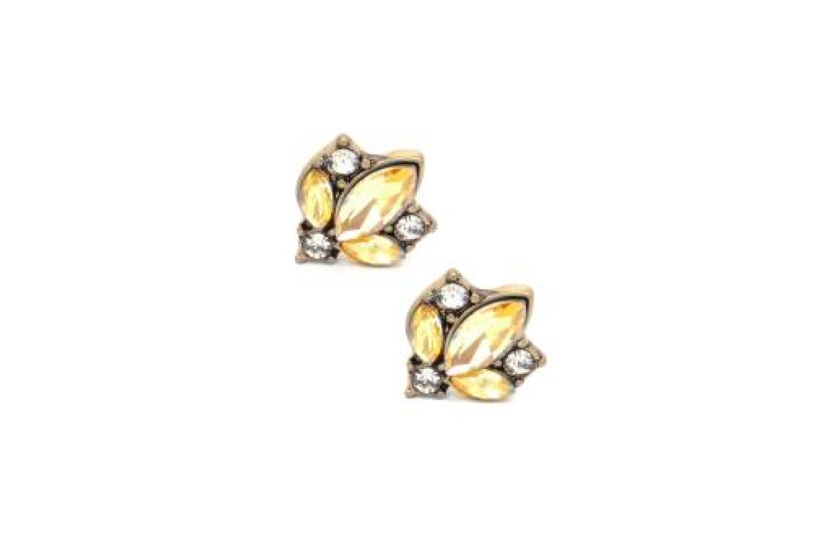 Delicate and full of sparkle, these floral-inspired stud earrings feature golden glass petals and crystal accents for a subtle glam look. Perfect for adding a little shine to both everyday outfits and special occasions.